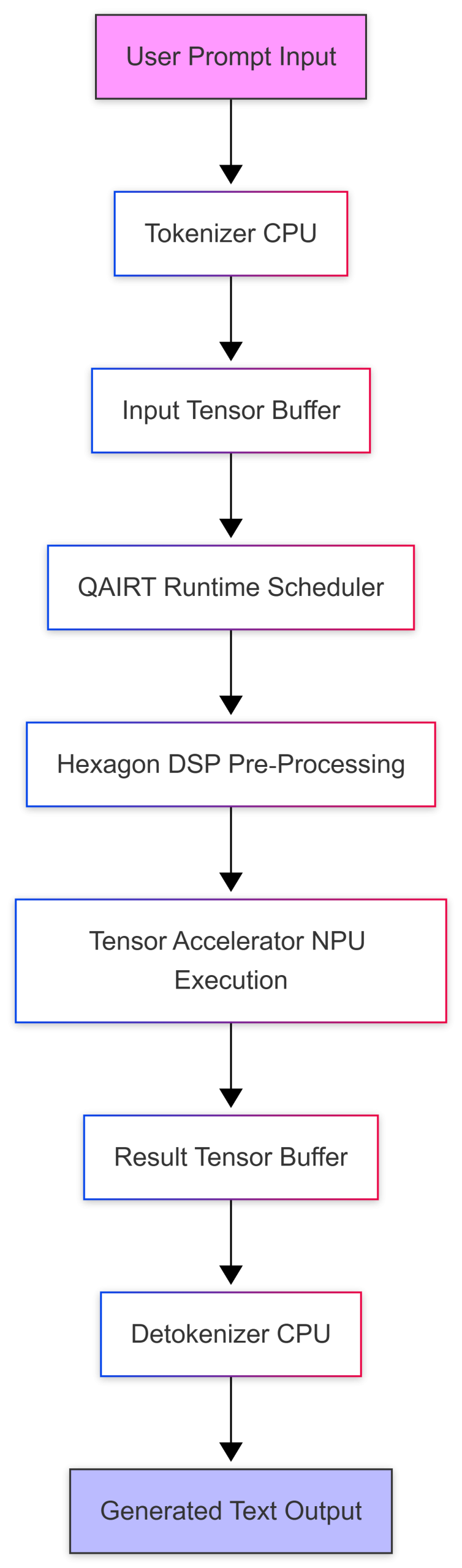 The following Mermaid diagram visualizes the data flow from user input to NPU inference and back to the application: